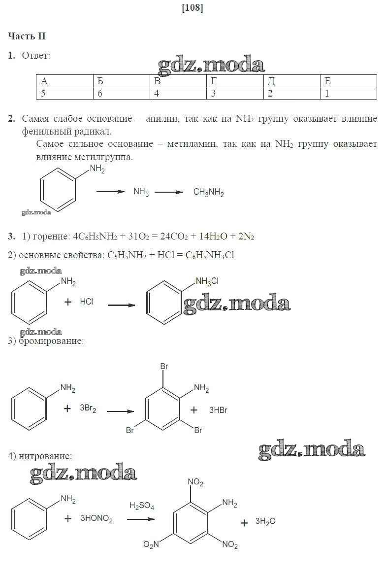ГДЗ решение к заданию № 108 Химия 10 класс рабочая тетрадь Габриелян О.С. Дрофа 2017 Базовый уровень ФГОС бесплатно на гдз.мода!