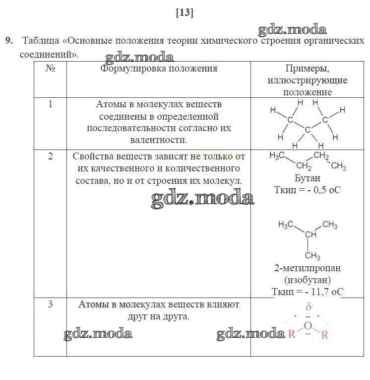 ГДЗ решение к заданию № 13 Химия 10 класс рабочая тетрадь Габриелян О.С. Дрофа 2017 Базовый уровень ФГОС бесплатно на гдз.мода!