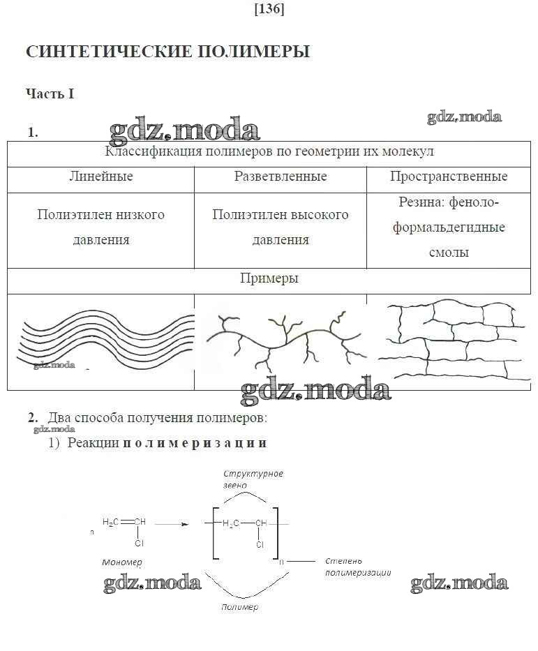 ГДЗ решение к заданию № 136 Химия 10 класс рабочая тетрадь Габриелян О.С. Дрофа 2017 Базовый уровень ФГОС бесплатно на гдз.мода!