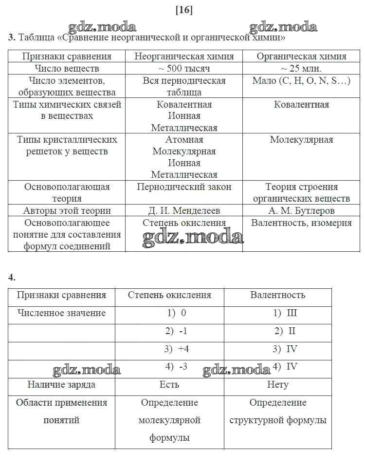 ГДЗ решение к заданию № 16 Химия 10 класс рабочая тетрадь Габриелян О.С. Дрофа 2017 Базовый уровень ФГОС бесплатно на гдз.мода!