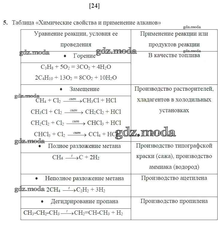ГДЗ решение к заданию № 24 Химия 10 класс рабочая тетрадь Габриелян О.С. Дрофа 2017 Базовый уровень ФГОС бесплатно на гдз.мода!