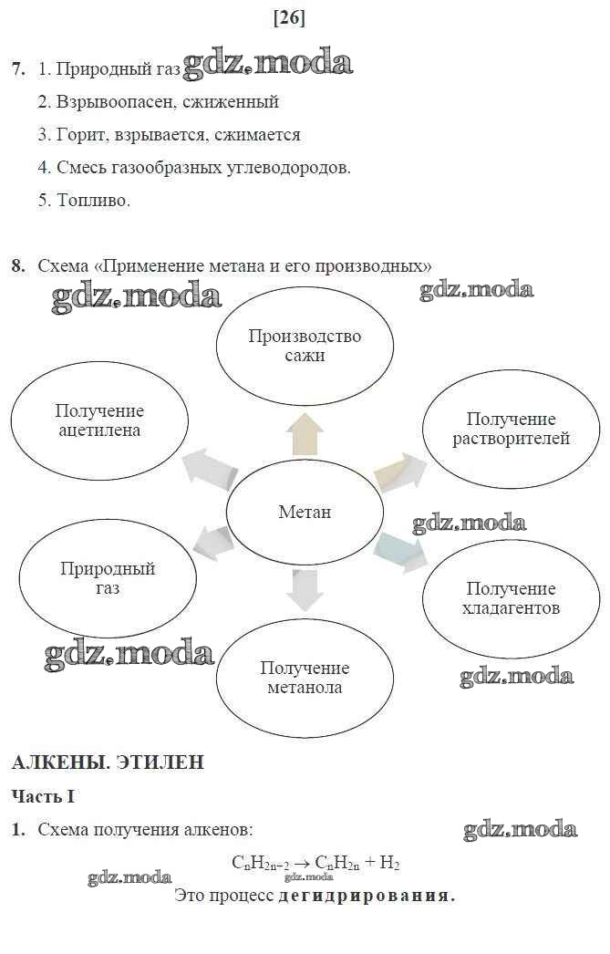 ГДЗ решение к заданию № 26 Химия 10 класс рабочая тетрадь Габриелян О.С. Дрофа 2017 Базовый уровень ФГОС бесплатно на гдз.мода!