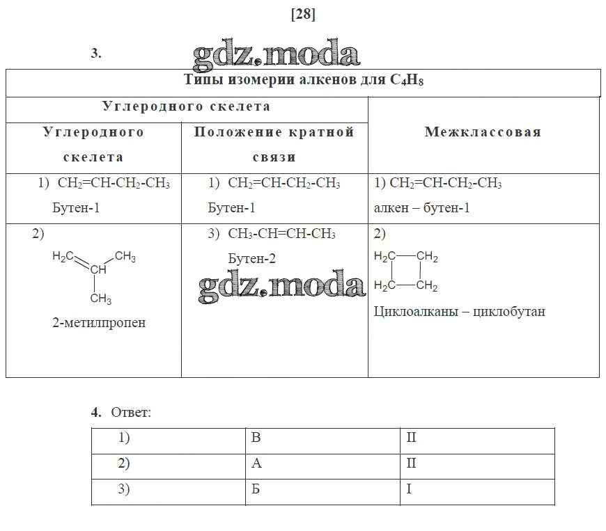 ГДЗ решение к заданию № 28 Химия 10 класс рабочая тетрадь Габриелян О.С. Дрофа 2017 Базовый уровень ФГОС бесплатно на гдз.мода!