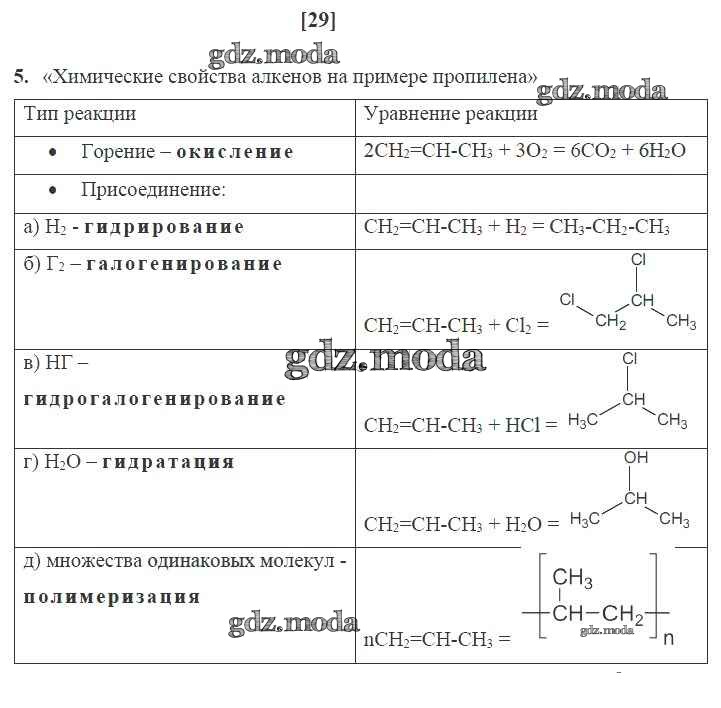 ГДЗ решение к заданию № 29 Химия 10 класс рабочая тетрадь Габриелян О.С. Дрофа 2017 Базовый уровень ФГОС бесплатно на гдз.мода!