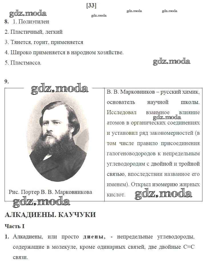 ГДЗ решение к заданию № 33 Химия 10 класс рабочая тетрадь Габриелян О.С. Дрофа 2017 Базовый уровень ФГОС бесплатно на гдз.мода!