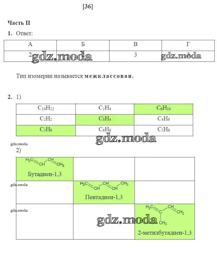 ГДЗ решение к заданию № 36 Химия 10 класс рабочая тетрадь Габриелян О.С. Дрофа 2017 Базовый уровень ФГОС бесплатно на гдз.мода!
