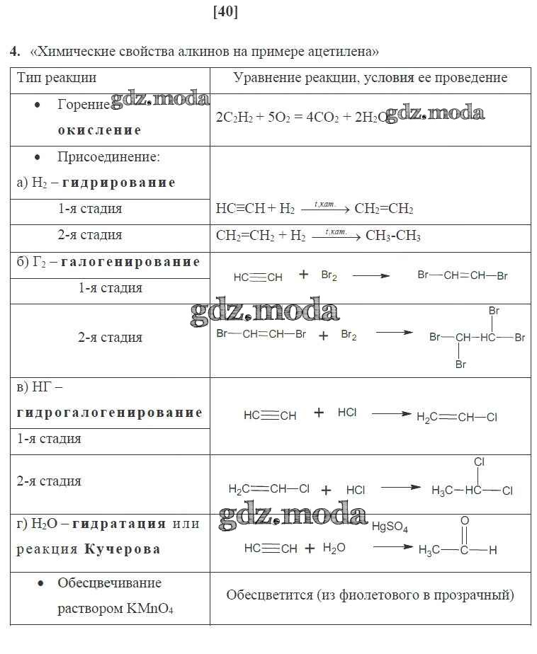 ГДЗ решение к заданию № 40 Химия 10 класс рабочая тетрадь Габриелян О.С. Дрофа 2017 Базовый уровень ФГОС бесплатно на гдз.мода!