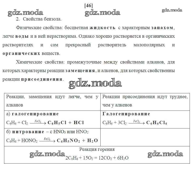 ГДЗ решение к заданию № 46 Химия 10 класс рабочая тетрадь Габриелян О.С. Дрофа 2017 Базовый уровень ФГОС бесплатно на гдз.мода!