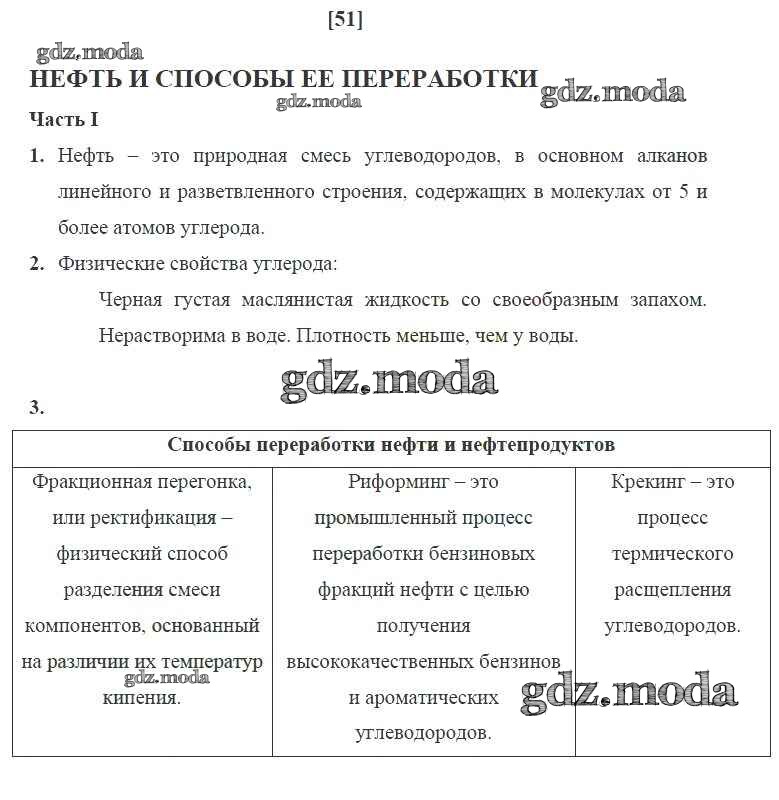 ГДЗ решение к заданию № 51 Химия 10 класс рабочая тетрадь Габриелян О.С. Дрофа 2017 Базовый уровень ФГОС бесплатно на гдз.мода!