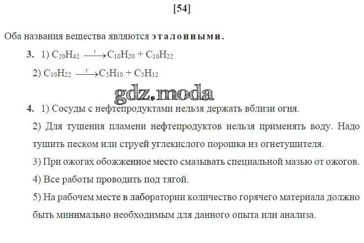 ГДЗ решение к заданию № 54 Химия 10 класс рабочая тетрадь Габриелян О.С. Дрофа 2017 Базовый уровень ФГОС бесплатно на гдз.мода!