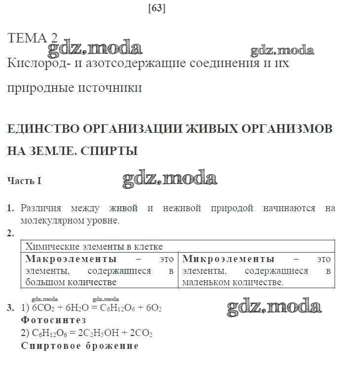 ГДЗ решение к заданию № 63 Химия 10 класс рабочая тетрадь Габриелян О.С. Дрофа 2017 Базовый уровень ФГОС бесплатно на гдз.мода!