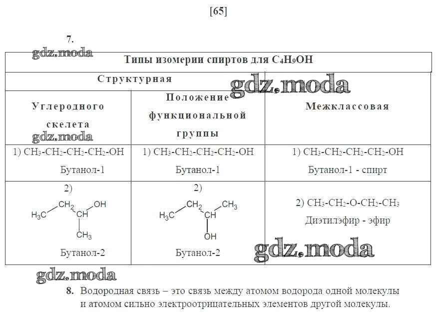 ГДЗ решение к заданию № 65 Химия 10 класс рабочая тетрадь Габриелян О.С. Дрофа 2017 Базовый уровень ФГОС бесплатно на гдз.мода!