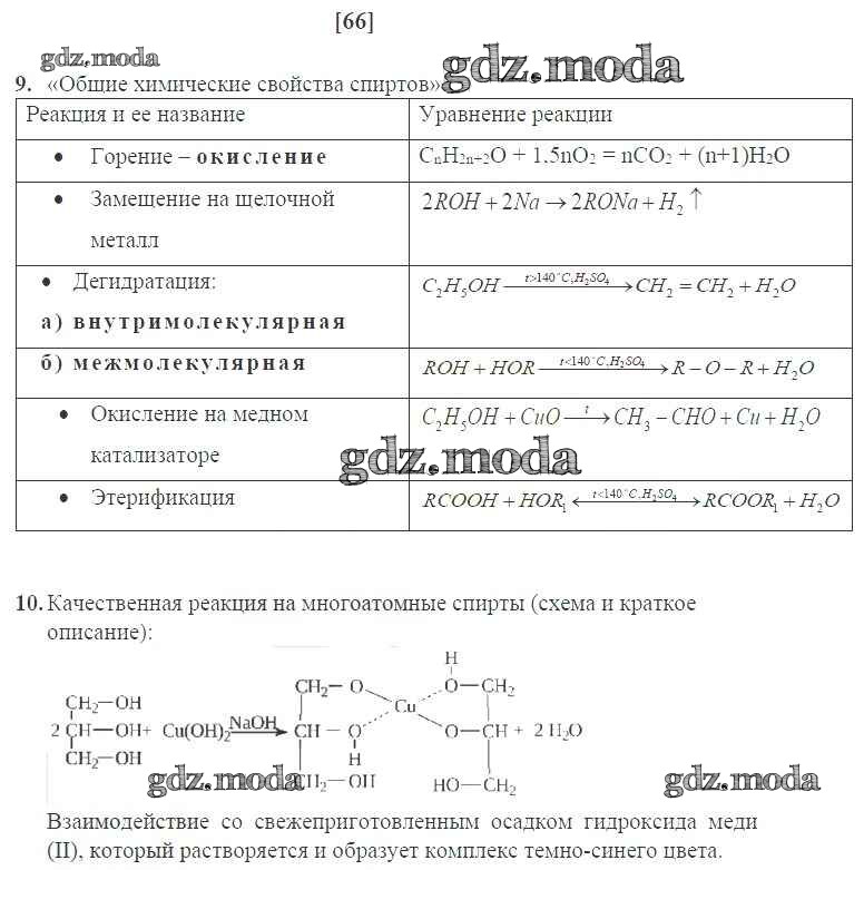 ГДЗ решение к заданию № 66 Химия 10 класс рабочая тетрадь Габриелян О.С. Дрофа 2017 Базовый уровень ФГОС бесплатно на гдз.мода!