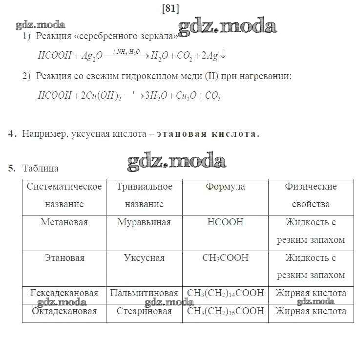 ГДЗ решение к заданию № 81 Химия 10 класс рабочая тетрадь Габриелян О.С. Дрофа 2017 Базовый уровень ФГОС бесплатно на гдз.мода!