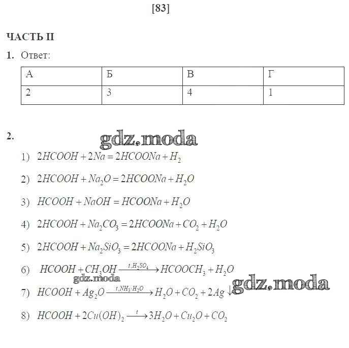 ГДЗ решение к заданию № 83 Химия 10 класс рабочая тетрадь Габриелян О.С. Дрофа 2017 Базовый уровень ФГОС бесплатно на гдз.мода!