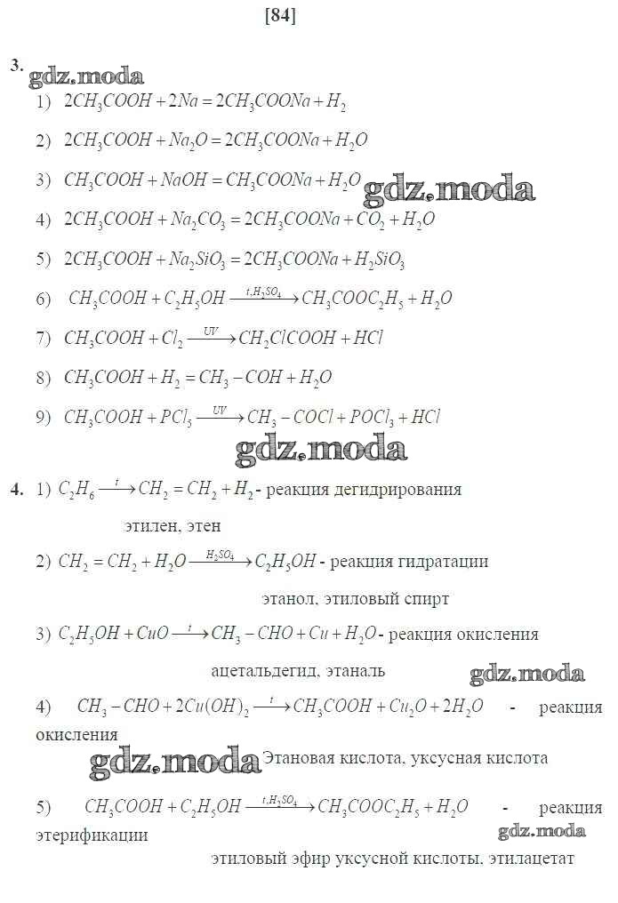 ГДЗ решение к заданию № 84 Химия 10 класс рабочая тетрадь Габриелян О.С. Дрофа 2017 Базовый уровень ФГОС бесплатно на гдз.мода!