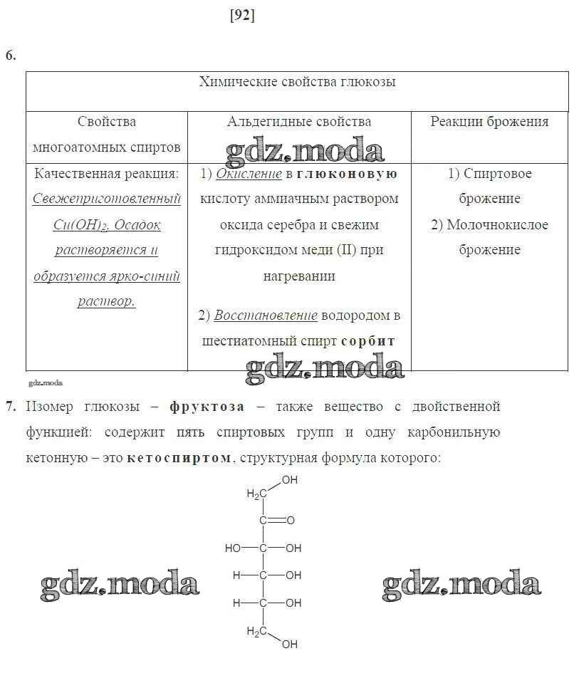 ГДЗ решение к заданию № 92 Химия 10 класс рабочая тетрадь Габриелян О.С. Дрофа 2017 Базовый уровень ФГОС бесплатно на гдз.мода!