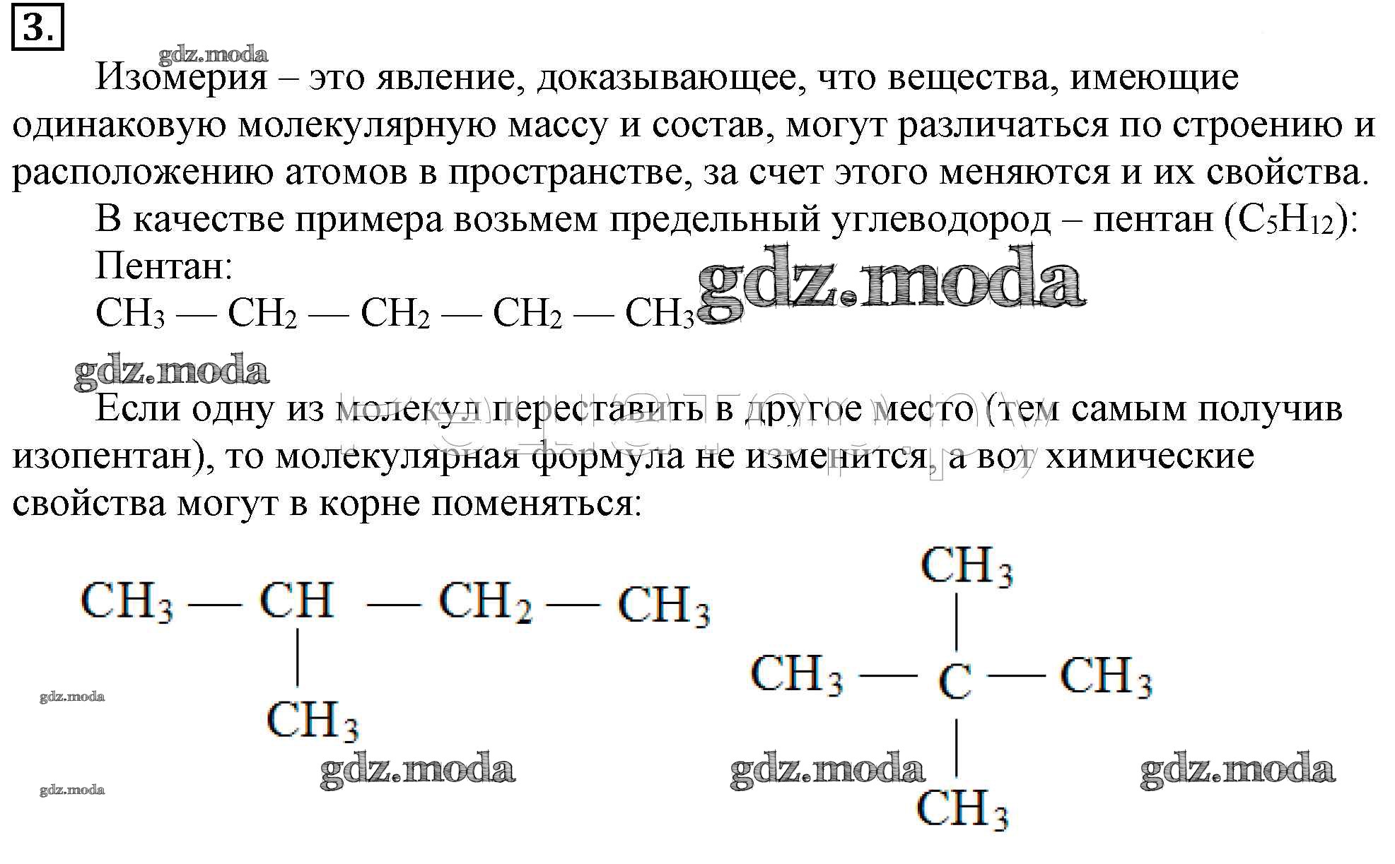 ГДЗ решение к заданию № 3 Химия 10 класс Рудзитис Г.Е. Просвещение 2014 ФГОС бесплатно на гдз.мода!