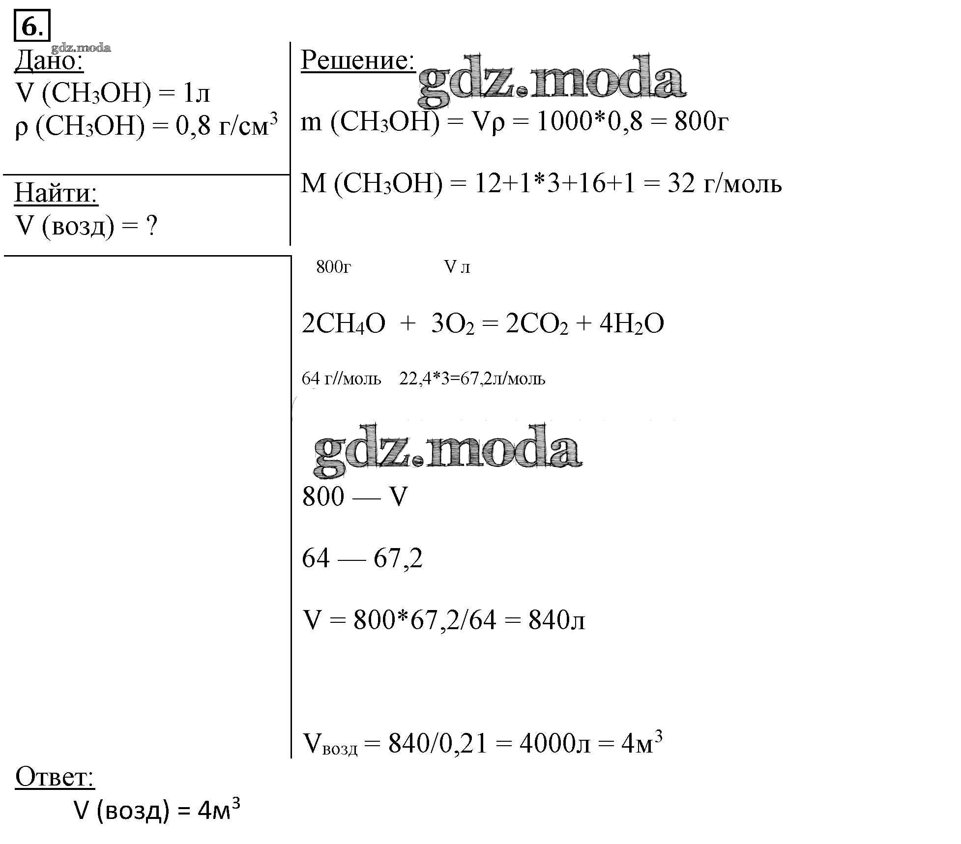 ГДЗ решение к заданию № 6 Химия 10 класс Рудзитис Г.Е. Просвещение 2014 ФГОС бесплатно на гдз.мода!