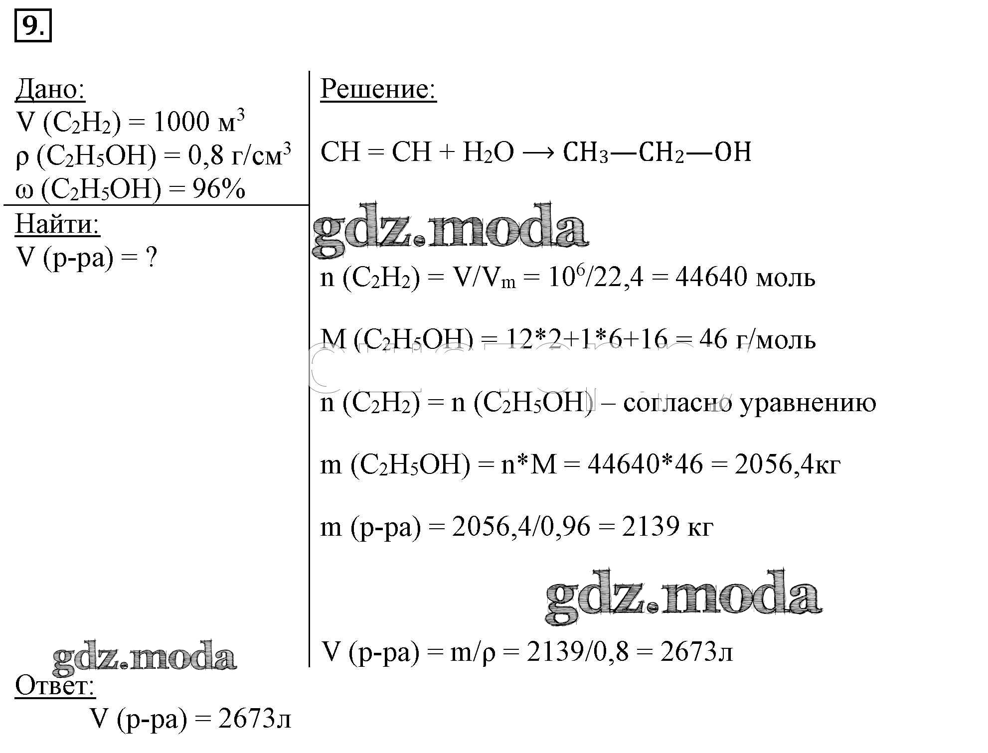 ГДЗ решение к заданию № 9 Химия 10 класс Рудзитис Г.Е. Просвещение 2014 ФГОС бесплатно на гдз.мода!