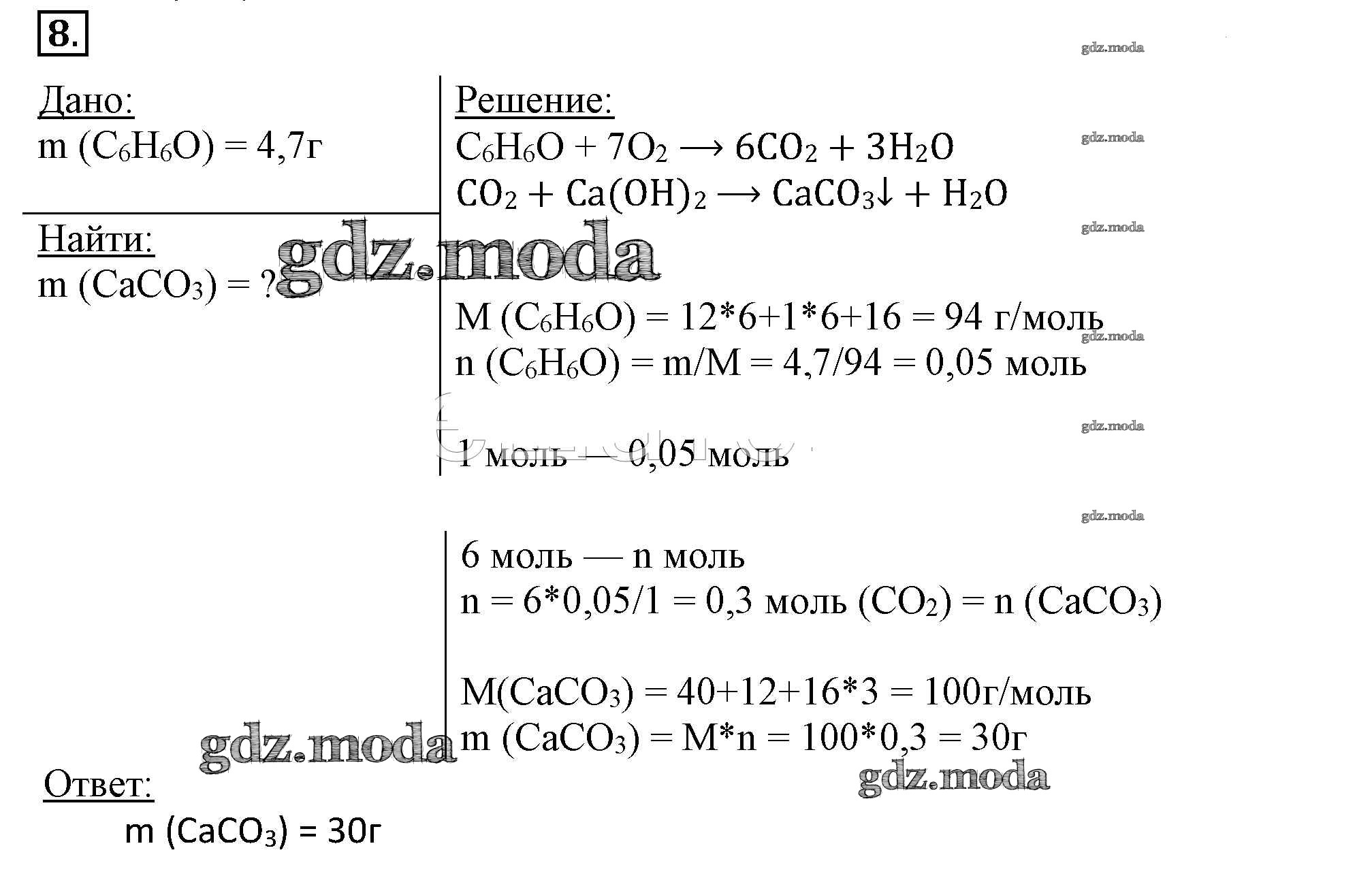 ГДЗ решение к заданию № 8 Химия 10 класс Рудзитис Г.Е. Просвещение 2014 ФГОС бесплатно на гдз.мода!