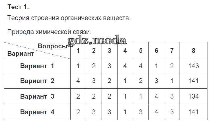 ОТВЕТ на задание № 1 Тесты по Химии 10 класс Боровских УМК