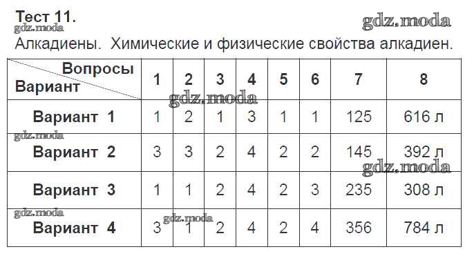 ОТВЕТ на задание № 11 Тесты по Химии 10 класс Боровских УМК