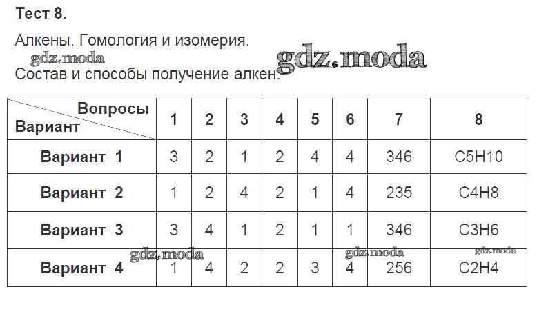 ОТВЕТ на задание № 8 Тесты по Химии 10 класс Боровских УМК