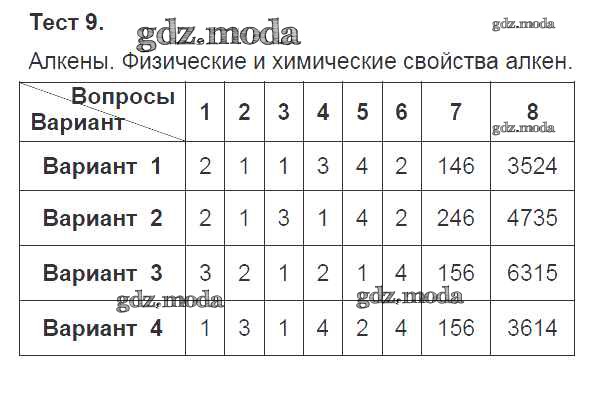 ГДЗ решение к заданию № 9 Химия 10 класс тесты Боровских Т.А. Экзамен 2013 ФГОС бесплатно на гдз.мода!