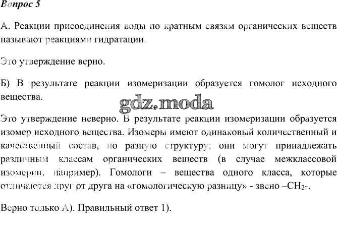 ГДЗ решение к заданию № 5 Химия 10 класс Габриелян О.С. Дрофа 2017 Углубленный уровень ФГОС бесплатно на гдз.мода!