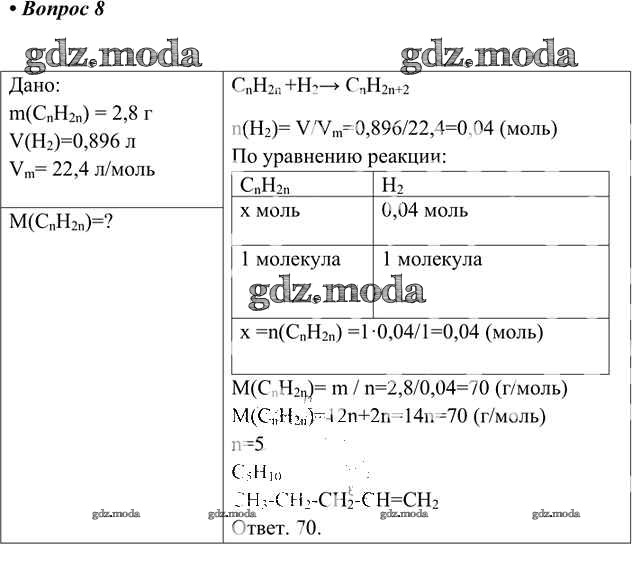 ГДЗ решение к заданию № 8 Химия 10 класс Габриелян О.С. Дрофа 2017 Углубленный уровень ФГОС бесплатно на гдз.мода!