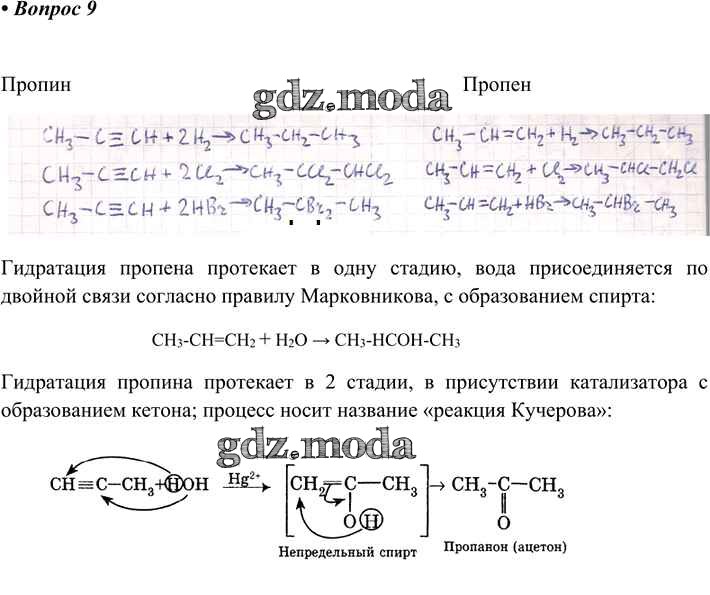 ГДЗ решение к заданию № 9 Химия 10 класс Габриелян О.С. Дрофа 2017 Углубленный уровень ФГОС бесплатно на гдз.мода!