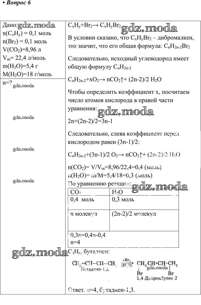 ГДЗ решение к заданию № 6 Химия 10 класс Габриелян О.С. Дрофа 2017 Углубленный уровень ФГОС бесплатно на гдз.мода!