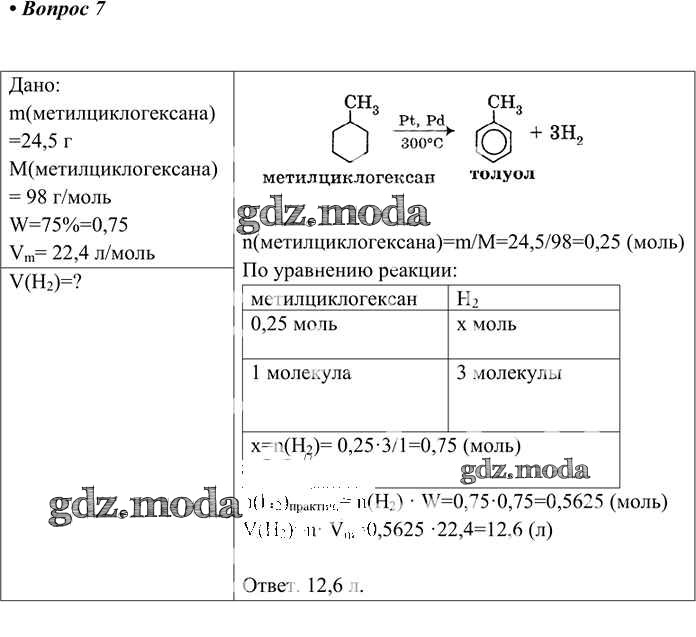 ГДЗ решение к заданию № 7 Химия 10 класс Габриелян О.С. Дрофа 2017 Углубленный уровень ФГОС бесплатно на гдз.мода!