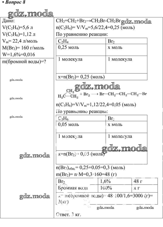 ГДЗ решение к заданию № 8 Химия 10 класс Габриелян О.С. Дрофа 2017 Углубленный уровень ФГОС бесплатно на гдз.мода!