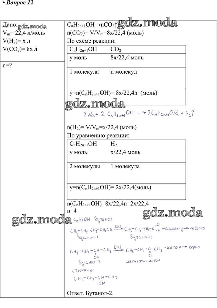 ГДЗ решение к заданию № 12 Химия 10 класс Габриелян О.С. Дрофа 2017 Углубленный уровень ФГОС бесплатно на гдз.мода!