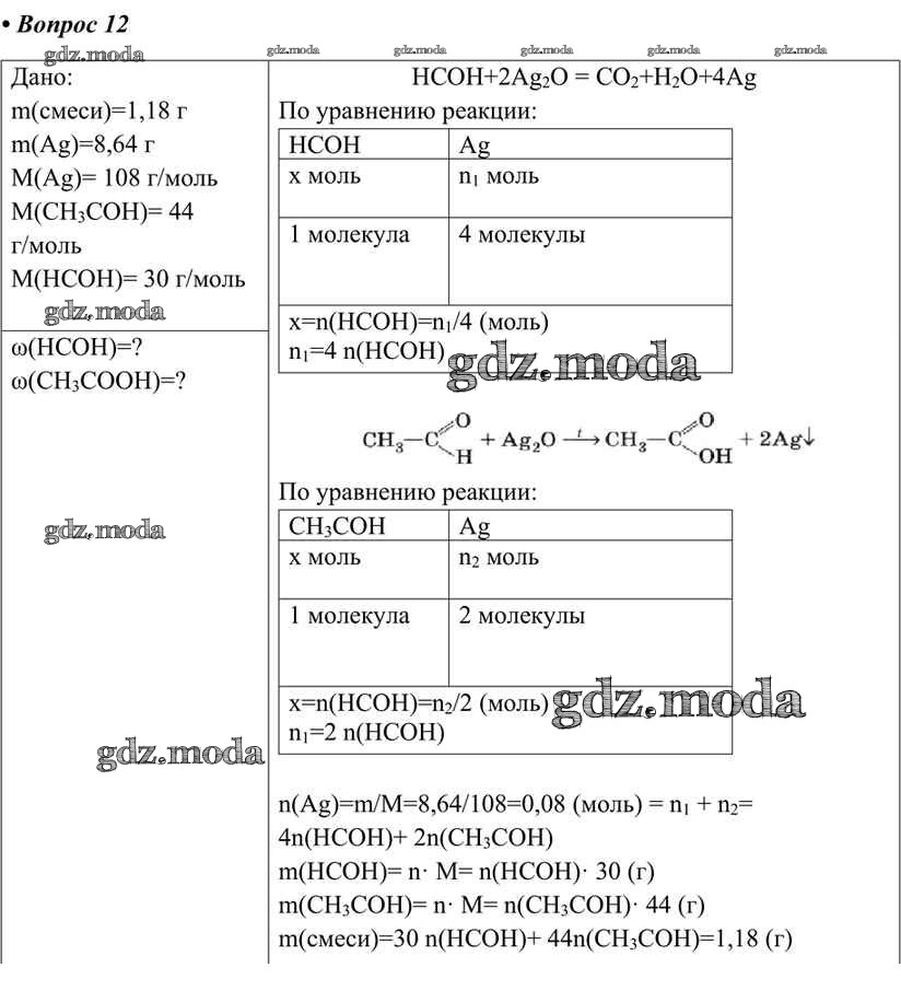 ГДЗ решение к заданию № 12 Химия 10 класс Габриелян О.С. Дрофа 2017 Углубленный уровень ФГОС бесплатно на гдз.мода!