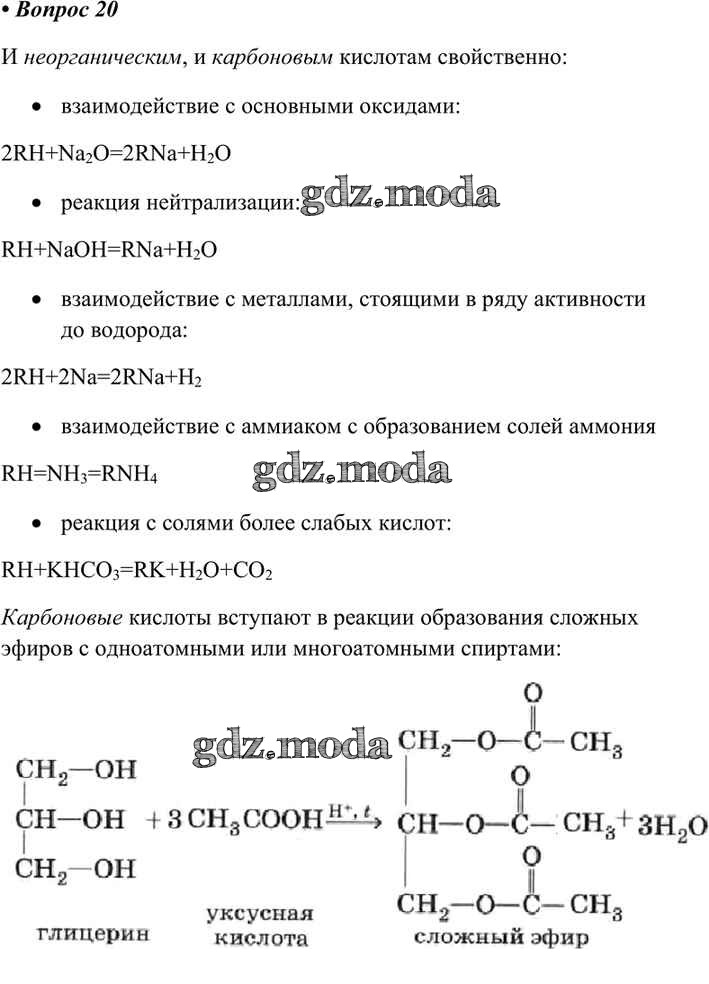 ГДЗ решение к заданию № 20 Химия 10 класс Габриелян О.С. Дрофа 2017 Углубленный уровень ФГОС бесплатно на гдз.мода!