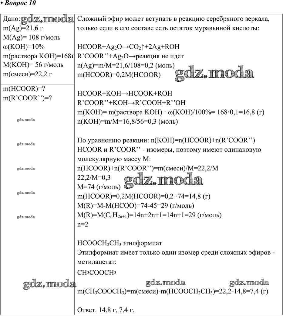 ГДЗ решение к заданию № 10 Химия 10 класс Габриелян О.С. Дрофа 2017 Углубленный уровень ФГОС бесплатно на гдз.мода!