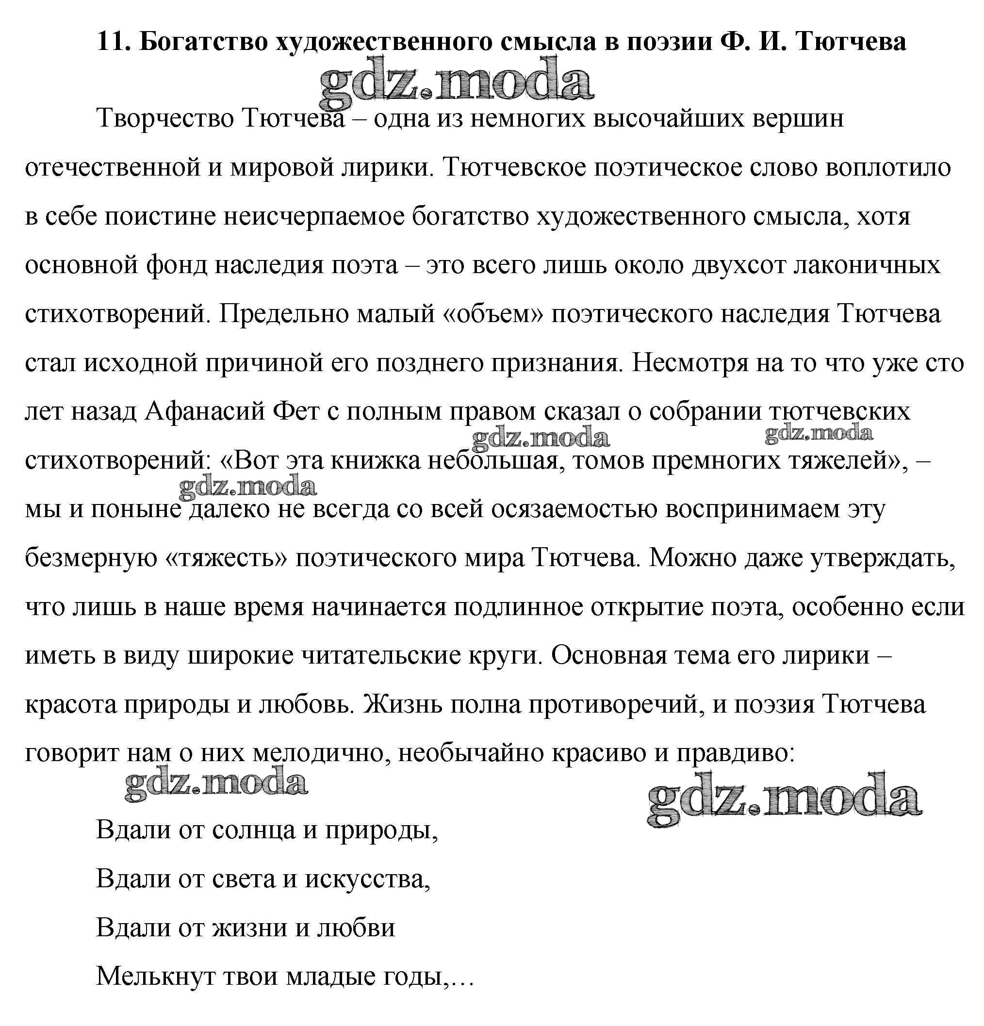 ГДЗ решение к заданию № 11. Богатство художественного смысла в поэзии Ф. И. Тютчева Готовые сочинения по литературе 10 класс Еременко М. В. ВАКО 2020 бесплатно на гдз.мода!