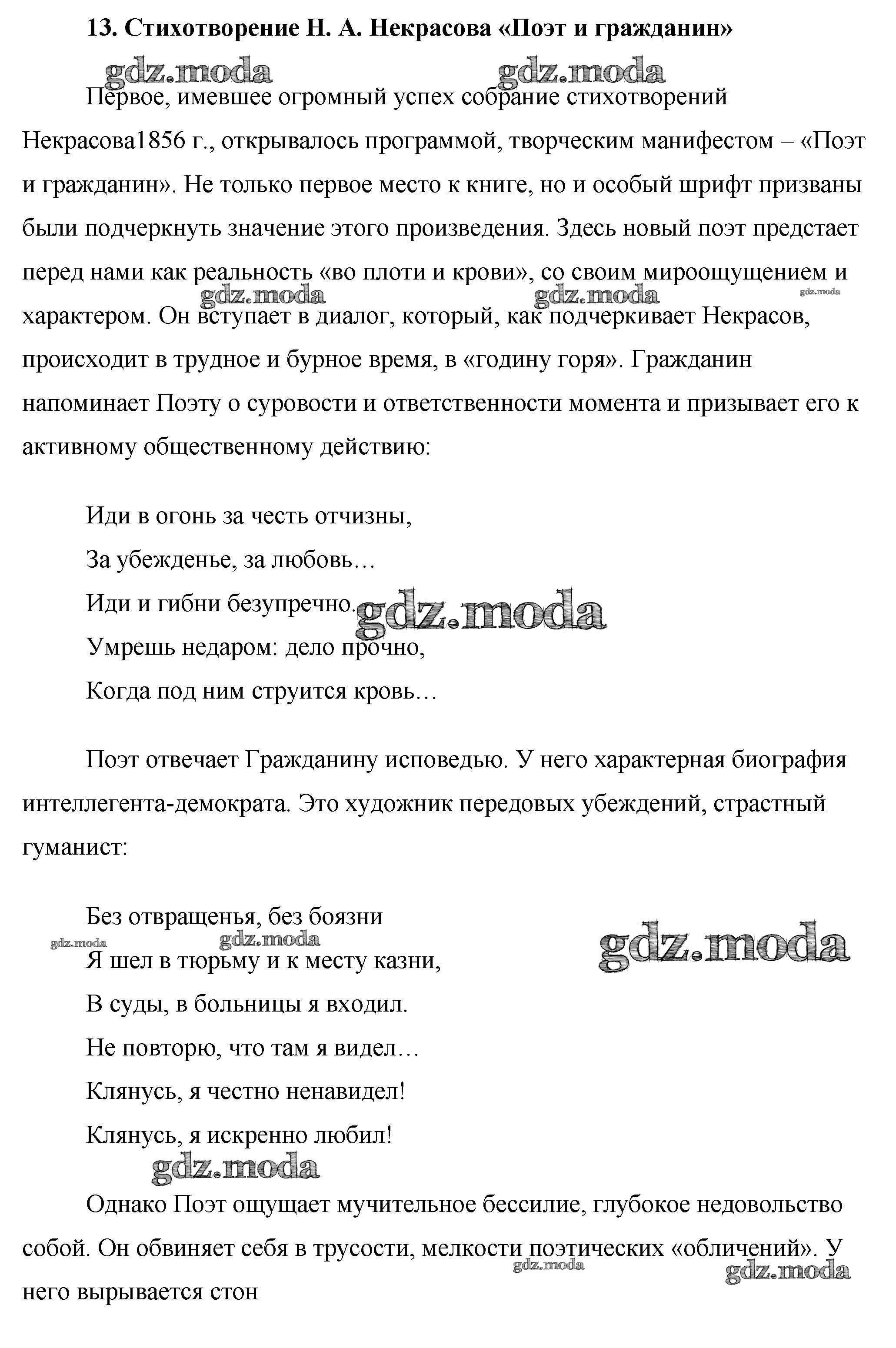 ГДЗ решение к заданию № 13. Стихотворение Н. А. Некрасова «Поэт и гражданин» Готовые сочинения по литературе 10 класс Еременко М. В. ВАКО 2020 бесплатно на гдз.мода!