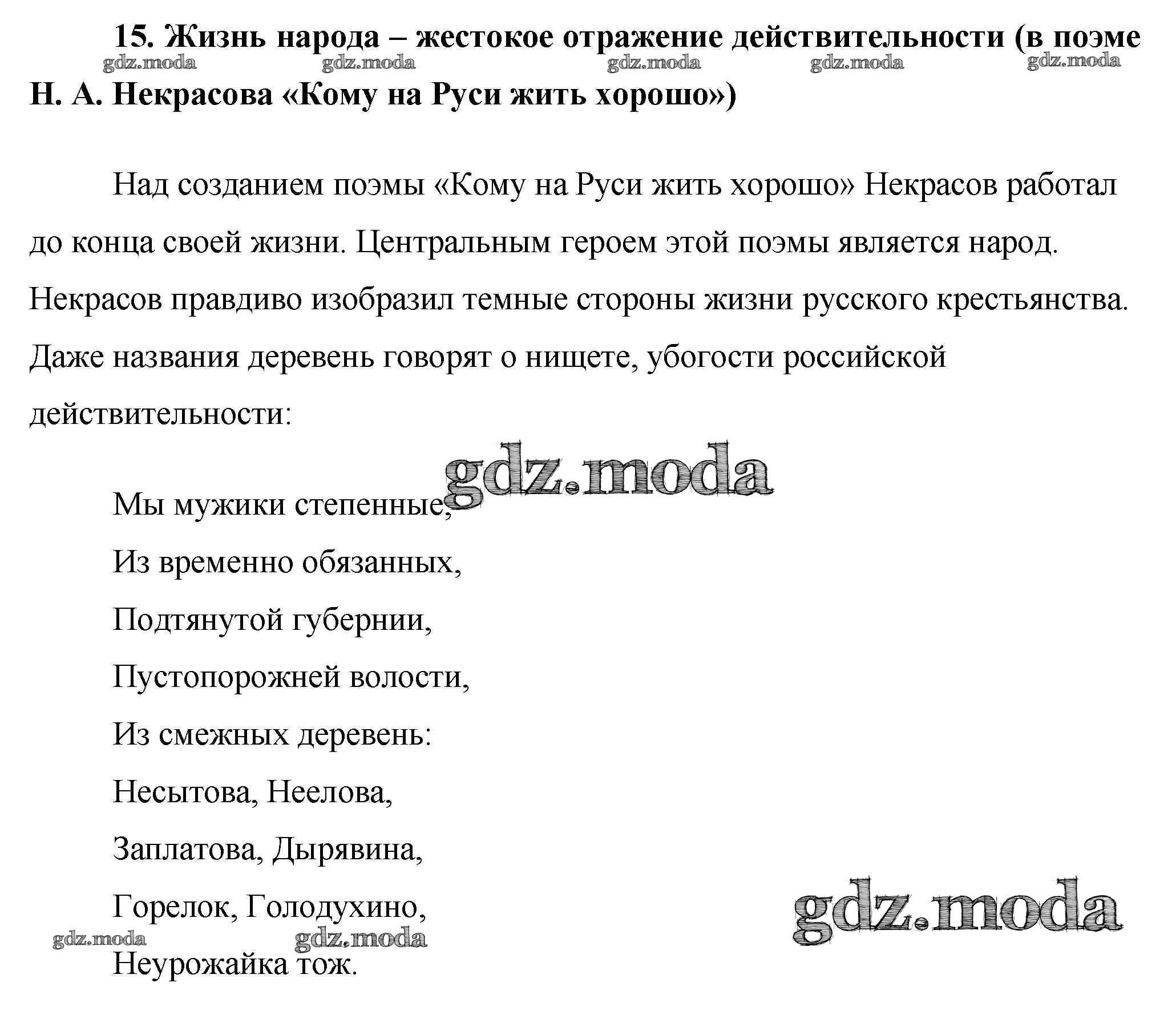 ГДЗ решение к заданию № 15. Жизнь народа – жестокое отражение действительности (в поэме Н. А. Некрасова «Кому на Руси жить хорошо») Готовые сочинения по литературе 10 класс Еременко М. В. ВАКО 2020 бесплатно на гдз.мода!