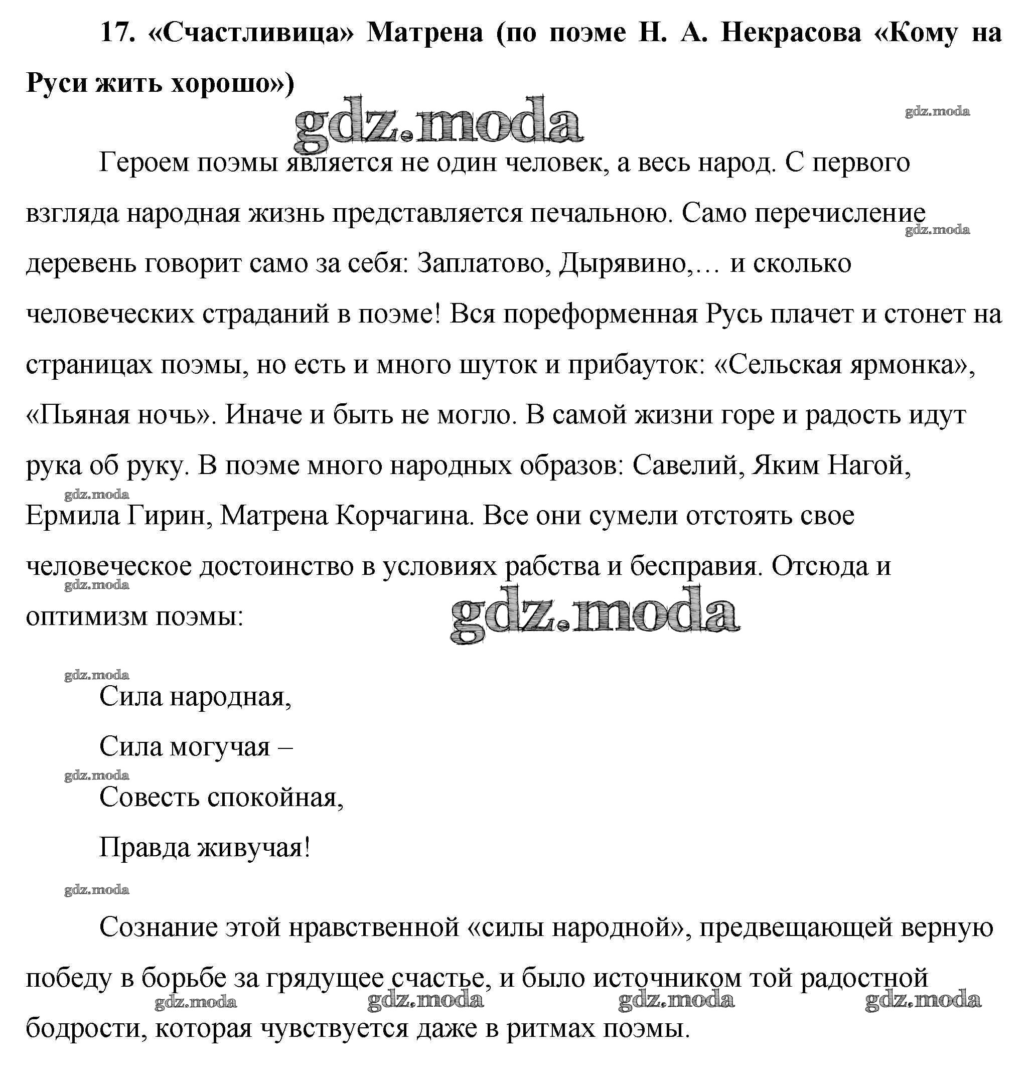 ОТВЕТ на задание № 17. «Счастливица» Матрена (по поэме Н. А. Некрасова «Кому на Руси жить хорошо») Сочинения по Литературе 10 класс Еременко Сам себе репетитор