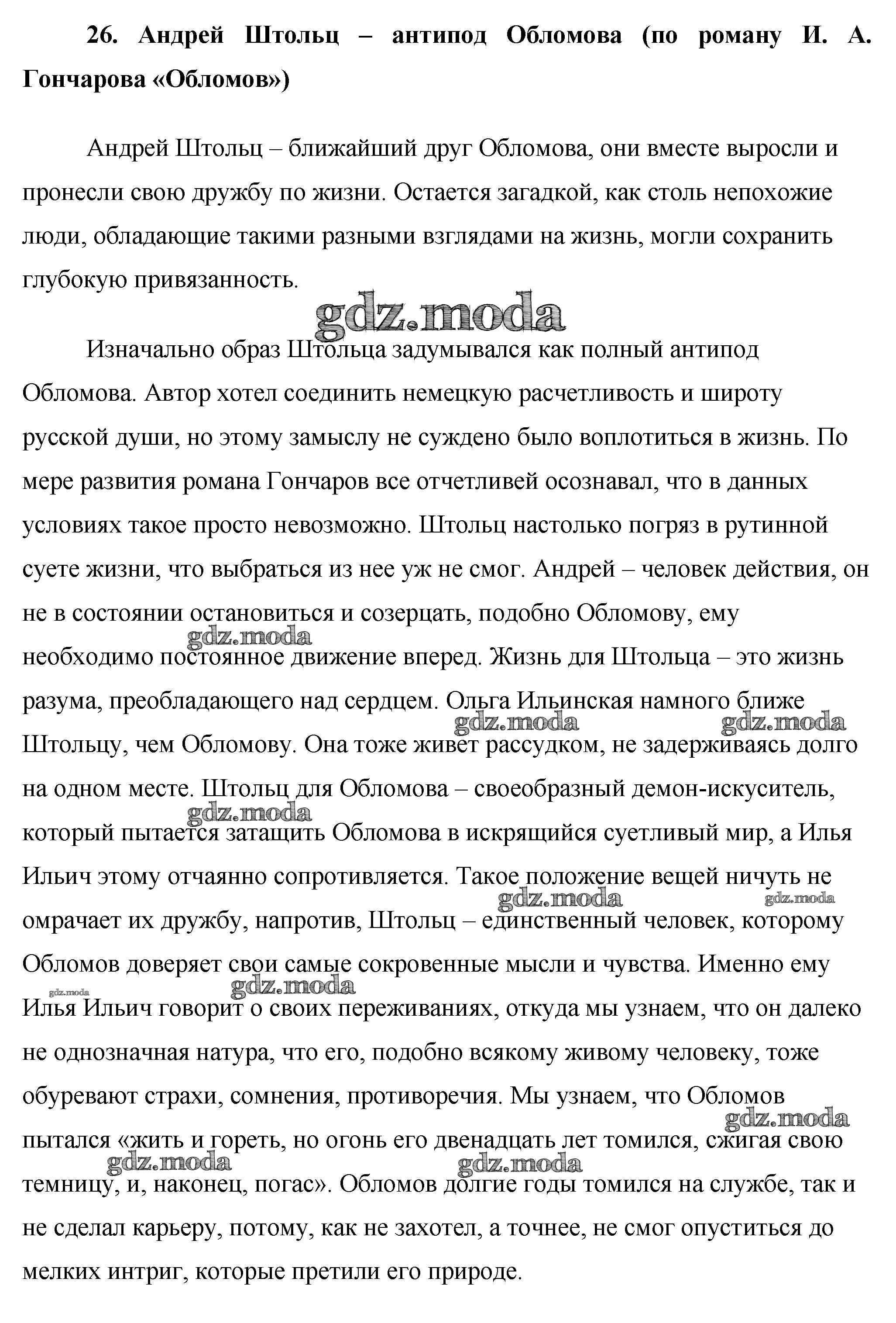 ОТВЕТ на задание № 26. Андрей Штольц – антипод Обломова (по роману И. А. Гончарова «Обломов») Сочинения по Литературе 10 класс Еременко Сам себе репетитор