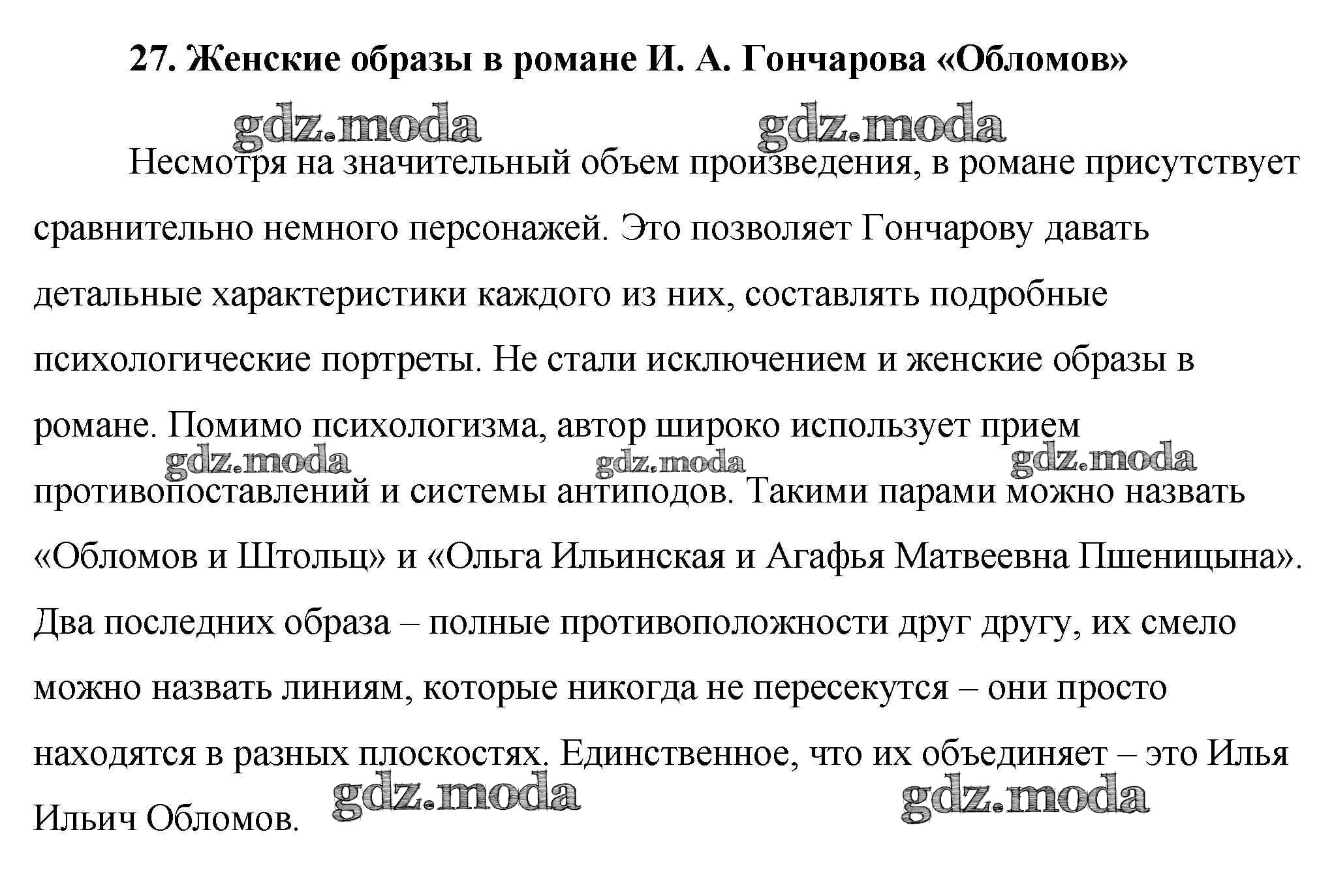 ГДЗ решение к заданию № 27. Женские образы в романе И. А. Гончарова «Обломов» Готовые сочинения по литературе 10 класс Еременко М. В. ВАКО 2020 бесплатно на гдз.мода!