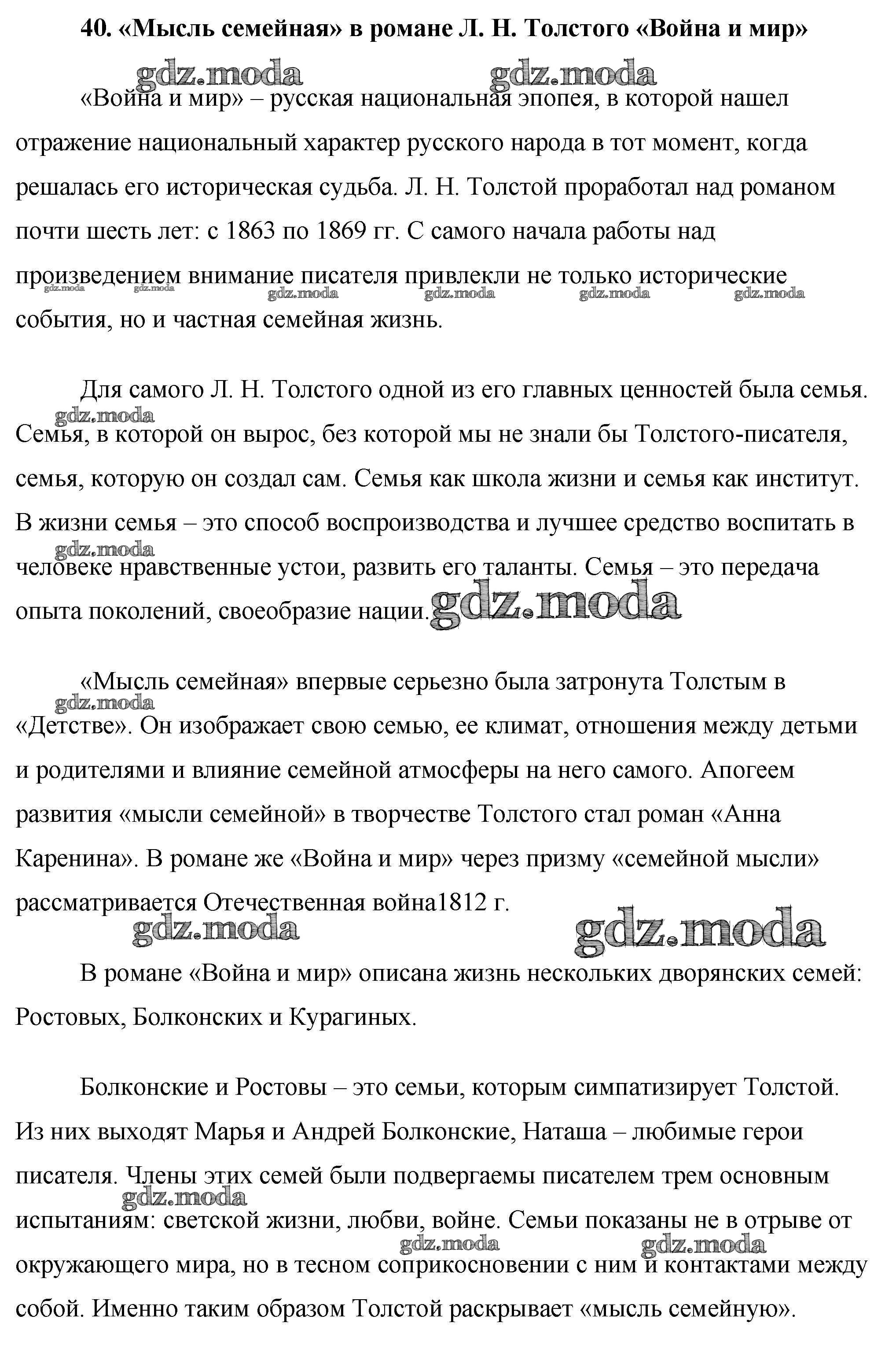 ГДЗ решение к заданию № 40. «Мысль семейная» в романе Л. Н. Толстого «Война и мир» Готовые сочинения по литературе 10 класс Еременко М. В. ВАКО 2020 бесплатно на гдз.мода!