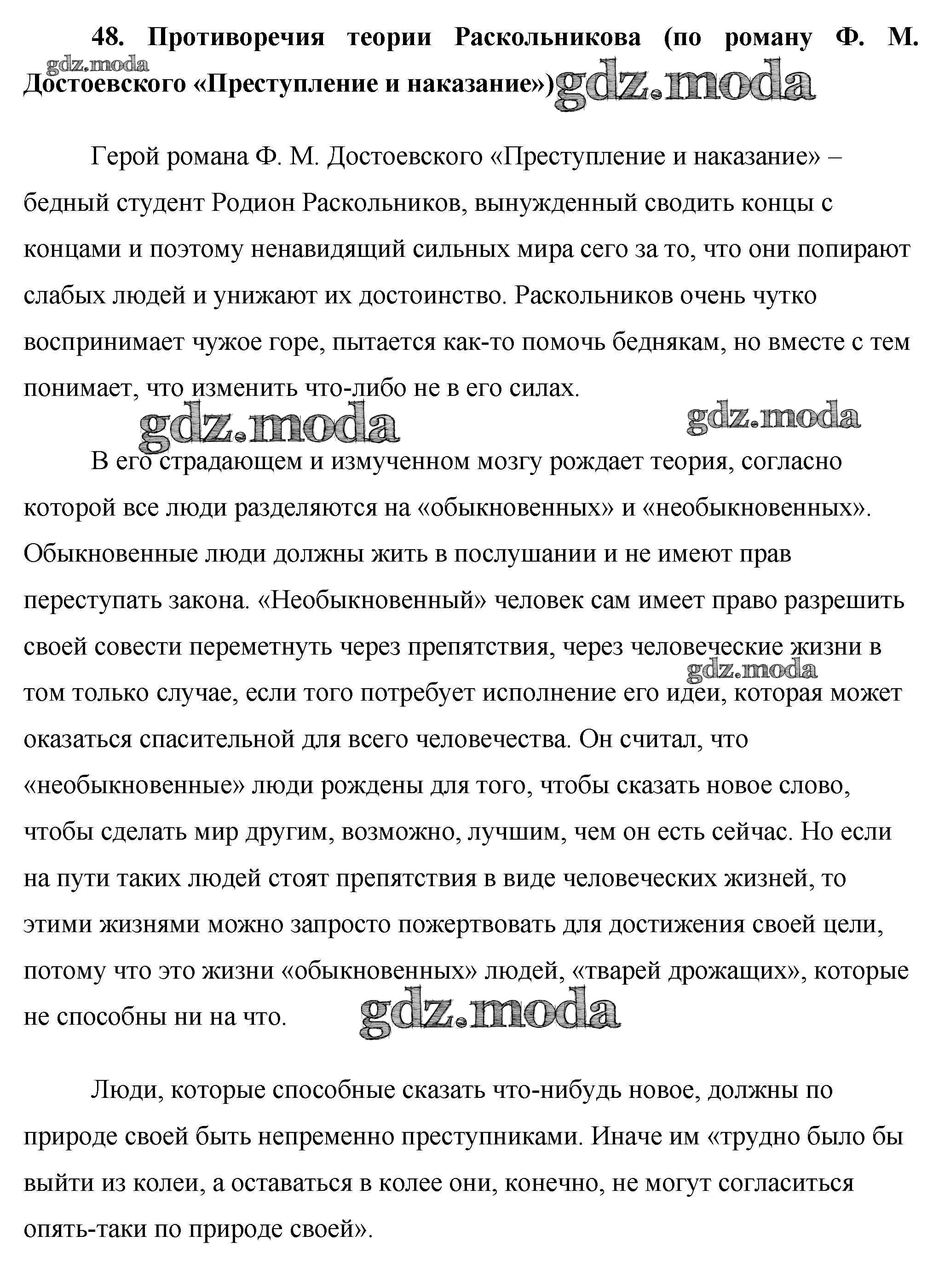 ГДЗ решение к заданию № 48. Противоречия теории Раскольникова (по роману Ф. М. Достоевского «Преступление и наказание») Готовые сочинения по литературе 10 класс Еременко М. В. ВАКО 2020 бесплатно на гдз.мода!