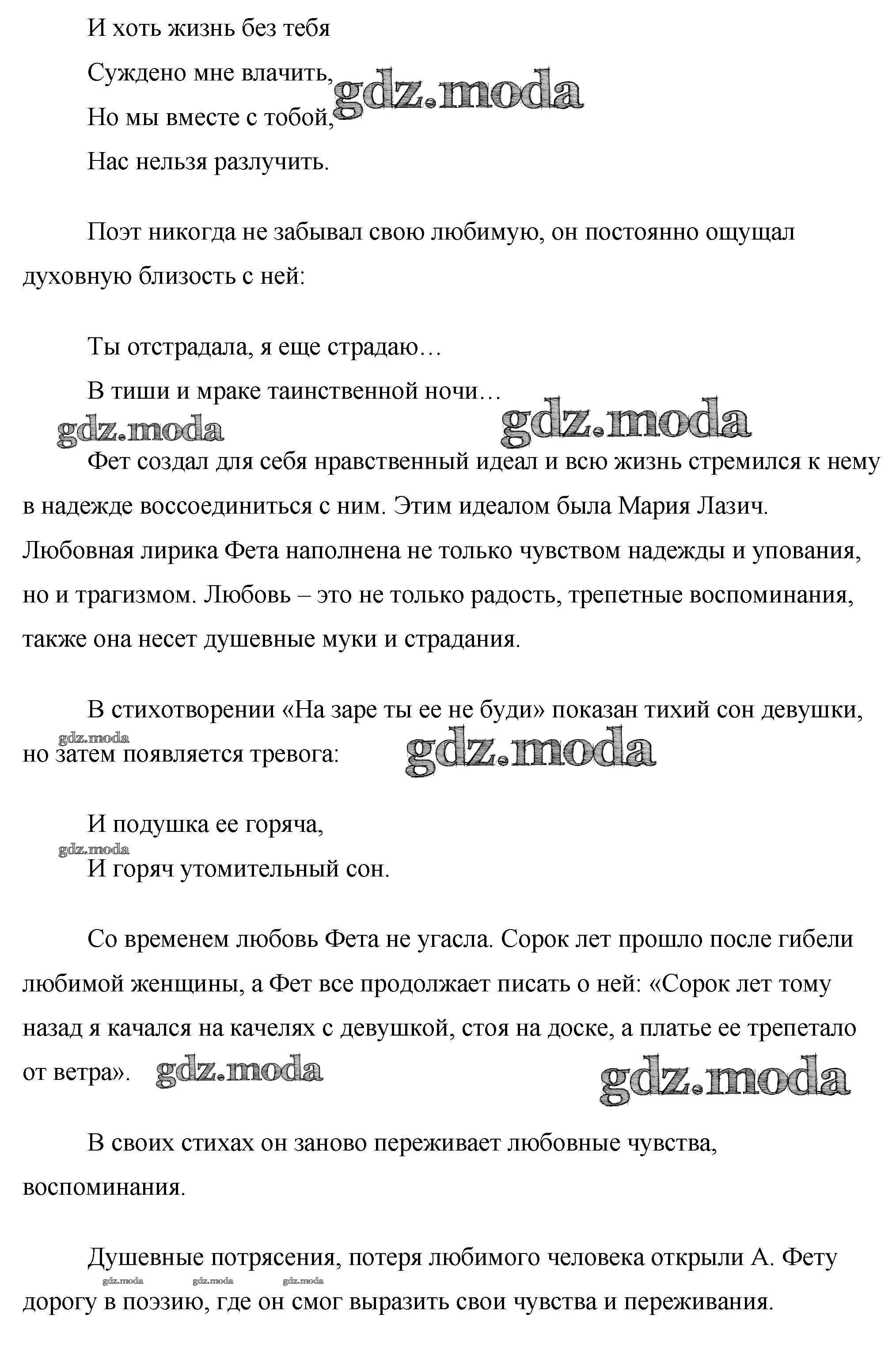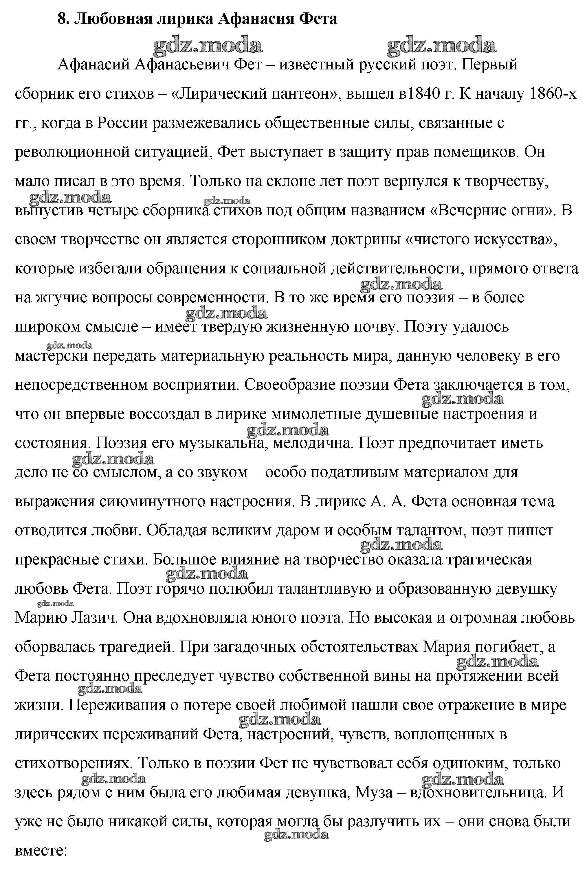 ГДЗ решение к заданию № 8. Любовная лирика Афанасия Фета Готовые сочинения по литературе 10 класс Еременко М. В. ВАКО 2020 бесплатно на гдз.мода!