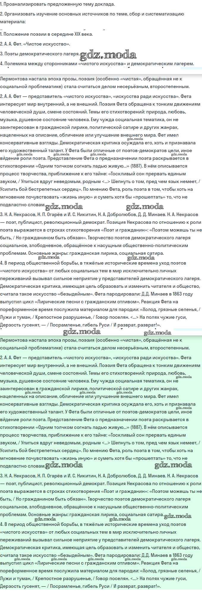 ОТВЕТ на задание № 276 Учебник по Литературе 10 класс Зинин Инновационная школа Базовый уровень