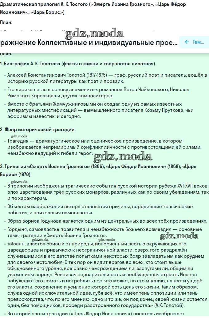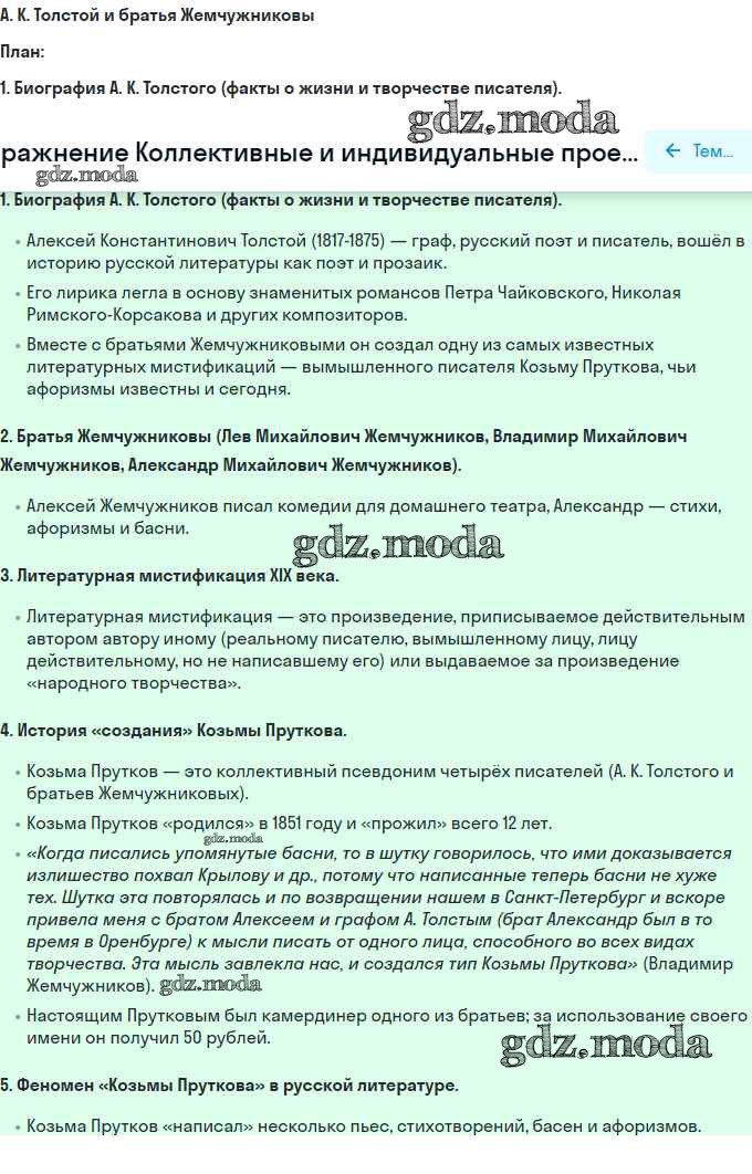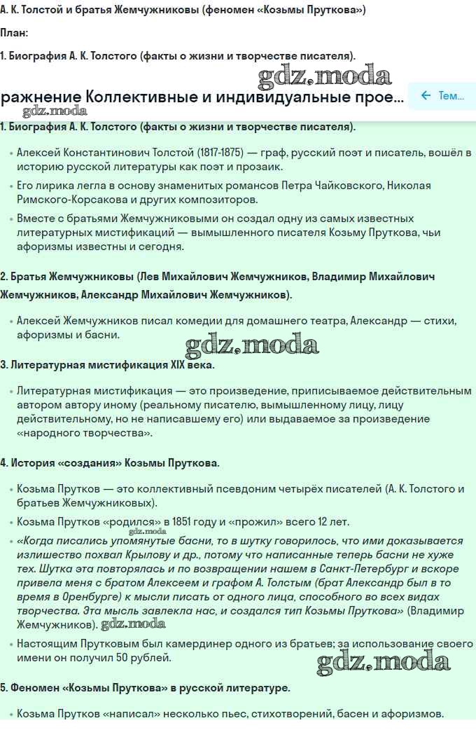ОТВЕТ на задание № 23 Учебник по Литературе 10 класс Зинин Инновационная школа Базовый уровень